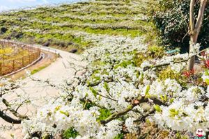 每年一到2月,这里万亩李树开满洁白的花朵,繁花似雪,生机盎然,惊艳整个山谷!远远望去,遍野的李花好似一片片白云坠落人间,又像是一座座小小的雪丘连绵无边。